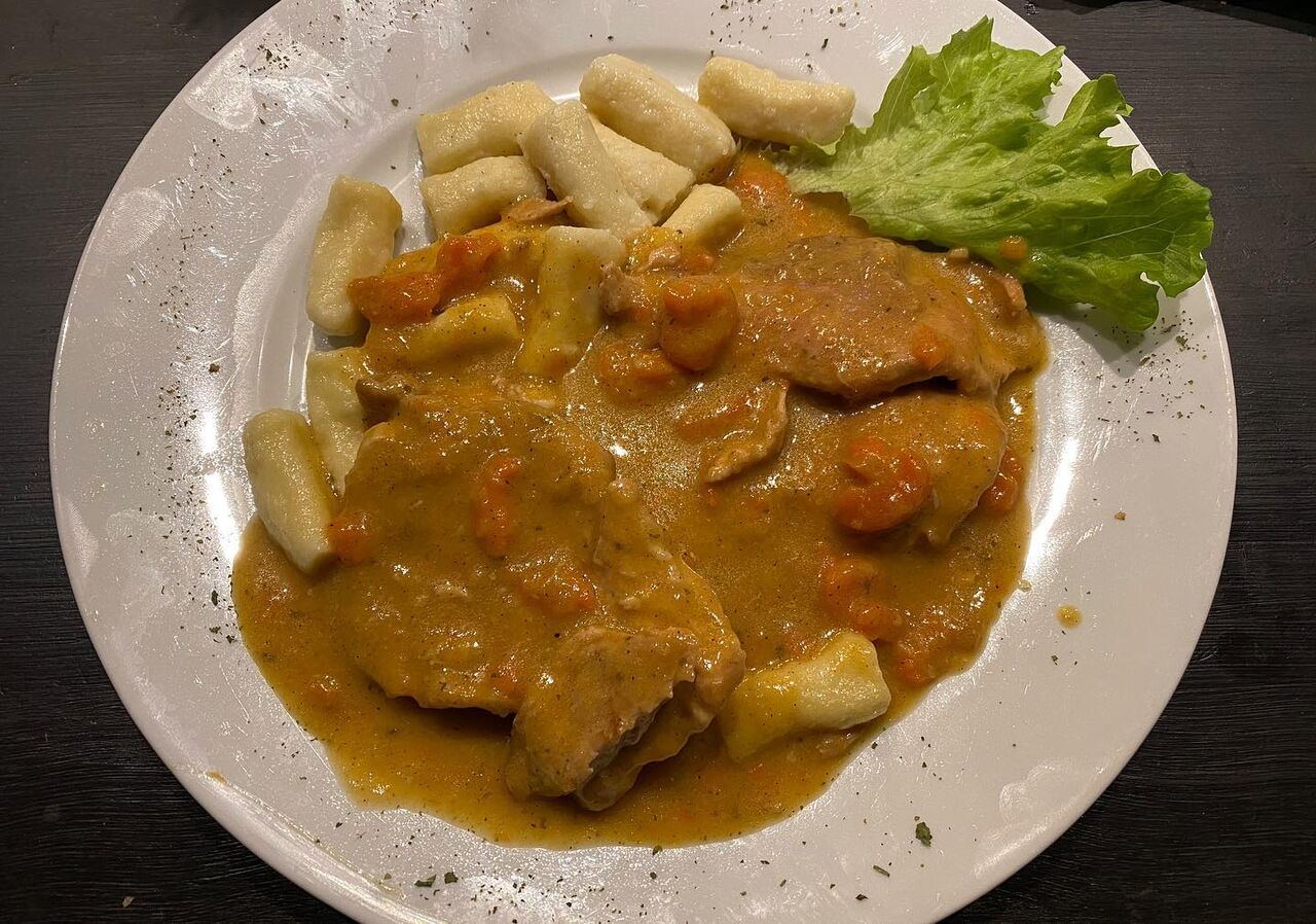 Sočni komadi piletine u aromatičnom curry umaku, savršeno sljubljeni s mekanim domaćim njokama